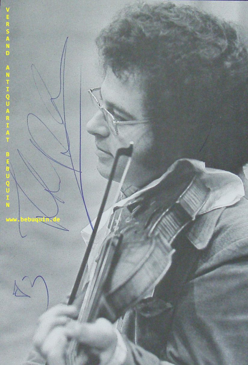 PERLMAN, Itzhak (Violinist): eigenhändig signierte Portraitseite. München, 28.2.1983. 21 x 14,5 cm 2 Bl. Itzhak Perlman (* 31. August 1945 in Tel Aviv) ist ein israelisch-amerikanischer Geiger, Dirigent und Musikpädagoge. Er gilt als einer der bedeutendsten Violinisten der zweiten Hälfte des 20. Jahrhunderts. (Wikipedia)