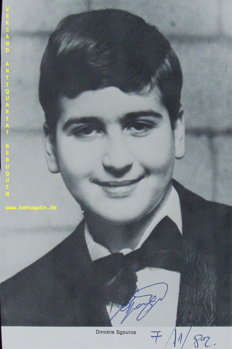 SGOUROS, Dimitris (Pianist): eigenhändig signiertes und datiertes Foto aus Programmheft. München, 7.11.1982. 19 x 12,5cm 1 Bl. Dimitris Sgouros (* 30. August 1969 in Athen) ist ein griechischer Pianist. Sgouros begann mit sechs Jahren Klavier zu spielen und gab im Alter von sieben Jahren sein erstes Konzert. Mit zwölf Jahren absolvierte er ein Studium am Athener Konservatorium für Musik mit Abschlüssen als Pianist und als Klavierlehrer. Im Jahre 1982 spielte er im Alter von nur zwölf Jahren Rachmaninows 3. Klavierkonzert in der Carnegie Hall in New York. Seitdem hat er weltweit zahlreiche Konzerte gegeben. (Wikipedia)