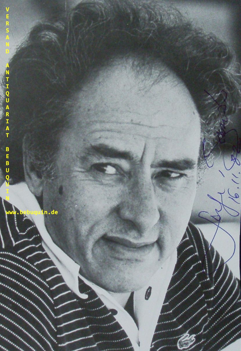 BAUDO, Serge (Dirigent): eigenhändig signierte und datierte Portraitseite. Mit dem Orchestre de Lyon. München (Philharmonie), 16.11.1982. 21 x 14,5 cm. 2 Bl. Serge Baudo (* 16. Juli 1927 in Marseille) ist ein französischer Dirigent. (Wikipedia)