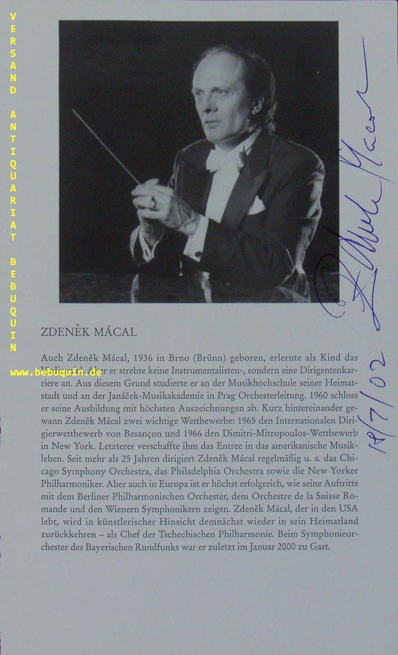 MACAL, Zdenek (Dirigent): eigenhändig signierte und datierte Portraitseite. München (Philharmonie), 18.7.2002. 26 x 16 cm. 1 Bl. schönes Stück. Zdenek Mácal (* 8. Januar 1936 in Brünn) ist ein tschechischer Dirigent. (Wikipedia)
