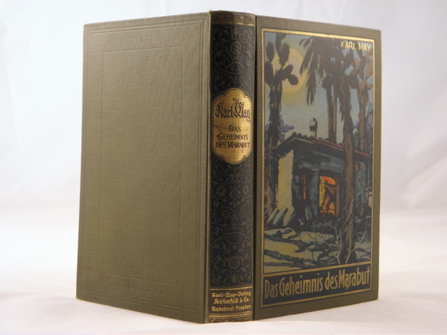 MAY, Karl: Das Geheimnis des Marabut. Hrsg. von E.A. Schmid und Franz Kandolf. Radebeul (Karl May), 1930. 444 (3) S. farb. ill. OLn. tolles Ex. mit dem Karl May Lesezeichen aus Radebeul inliegend. = Gesammelte Werke, Bd. 57. EA. Hermesmeier / Schmatz GW 57.1.