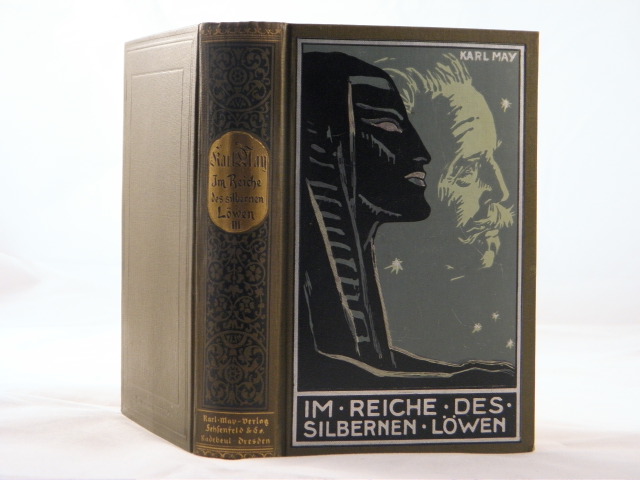 MAY, Karl: Im Reiche des silbernen Löwen. III. Band. Reiseerzählung. 83.– 87. Tsd. Radebeul (Karl May), (1932). 636 S. farb. ill. OLn. farbstarkes Ex. mit glänzendem Rückengold. = Gesammelte Werke, Bd. 28. Hermesmeier / Schmalz GW 28.14.