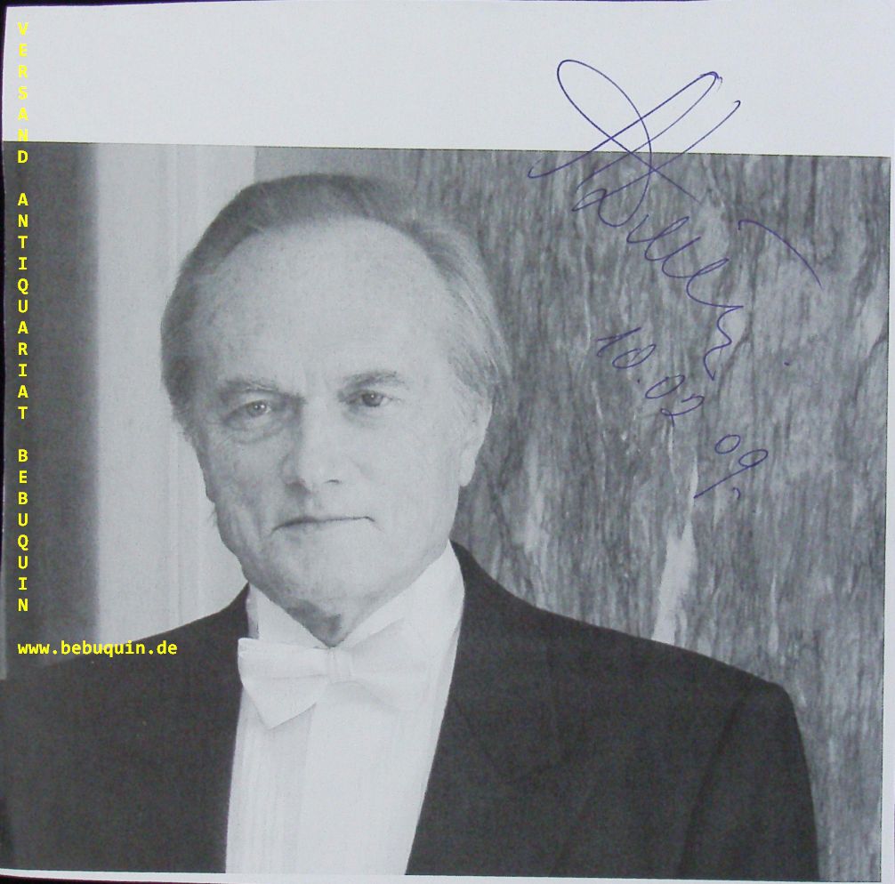 DMITRJEV, Alexander (Dirigent): eigenhändig signierte und datierte Portraitseite. München (Herkulessaal), 10.2.2009. 19 x 19 cm. 2 Bl. Aleksandr Sergeyevich Dmitriyev (born in Leningrad on 19 January 1935), is a Russian conductor of orchestral and choral music and opera. He has been director of the Symphony Orchestra of the Karel Autonomous Republic, and Principal Conductor of the Maly Academic Opera House in Leningrad. Since 1977 he has been Chief Conductor and Artistic director of the Academic Symphony Orchestra of the St. Petersburg Philharmonia. He has toured many countries worldwide performing a wide range of musical periods and styles. In 2005, he was awarded the Order of Honour for Merit in the field of Culture and Art by Vladimir Putin. (Wikipedia)