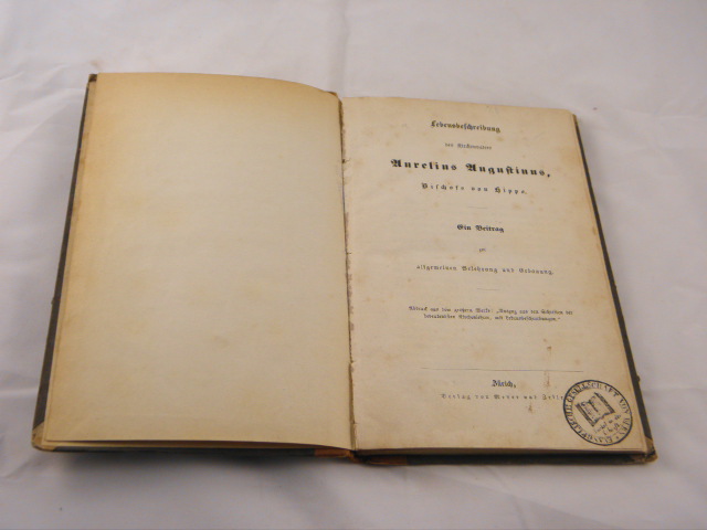 AURELIUS AUGUSTINUS.– LEBENSBESCHREIBUNG DES KIRCHENVATERS AURELIUS AUGUSTINUS.– Ein Beitrag zur allgemeinen Belehrung und Erbauung. Zürich (Meyer und Zeller), (1850). 122 S. HLdr der Zeit. Kanten berieben, NaT. EA.