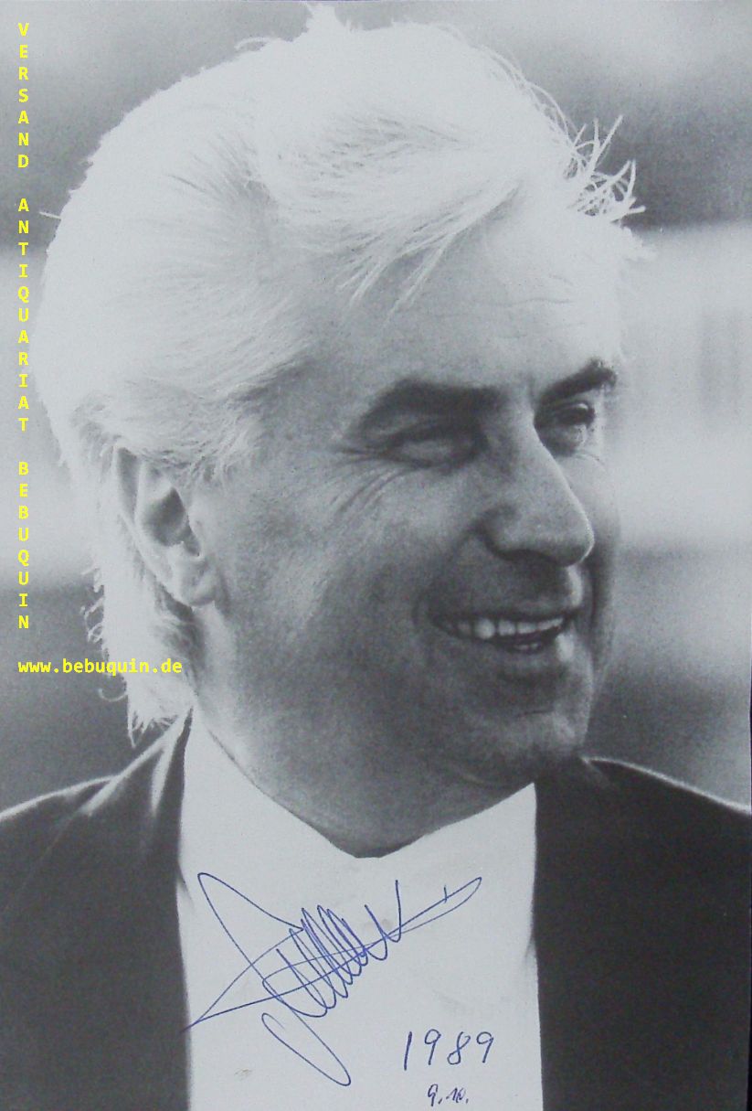 KITAJENKO, Dmitrij (Dirigent): eigenhändig signierte Portraitseite. München (Philharmonie), 9.10.1989. 21 x 14 cm. 1 Bl. Dmitri Georgijewitsch Kitajenko (* 18. August 1940 in Leningrad (heute Sankt Petersburg), Sowjetunion) ist ein russischer Dirigent.