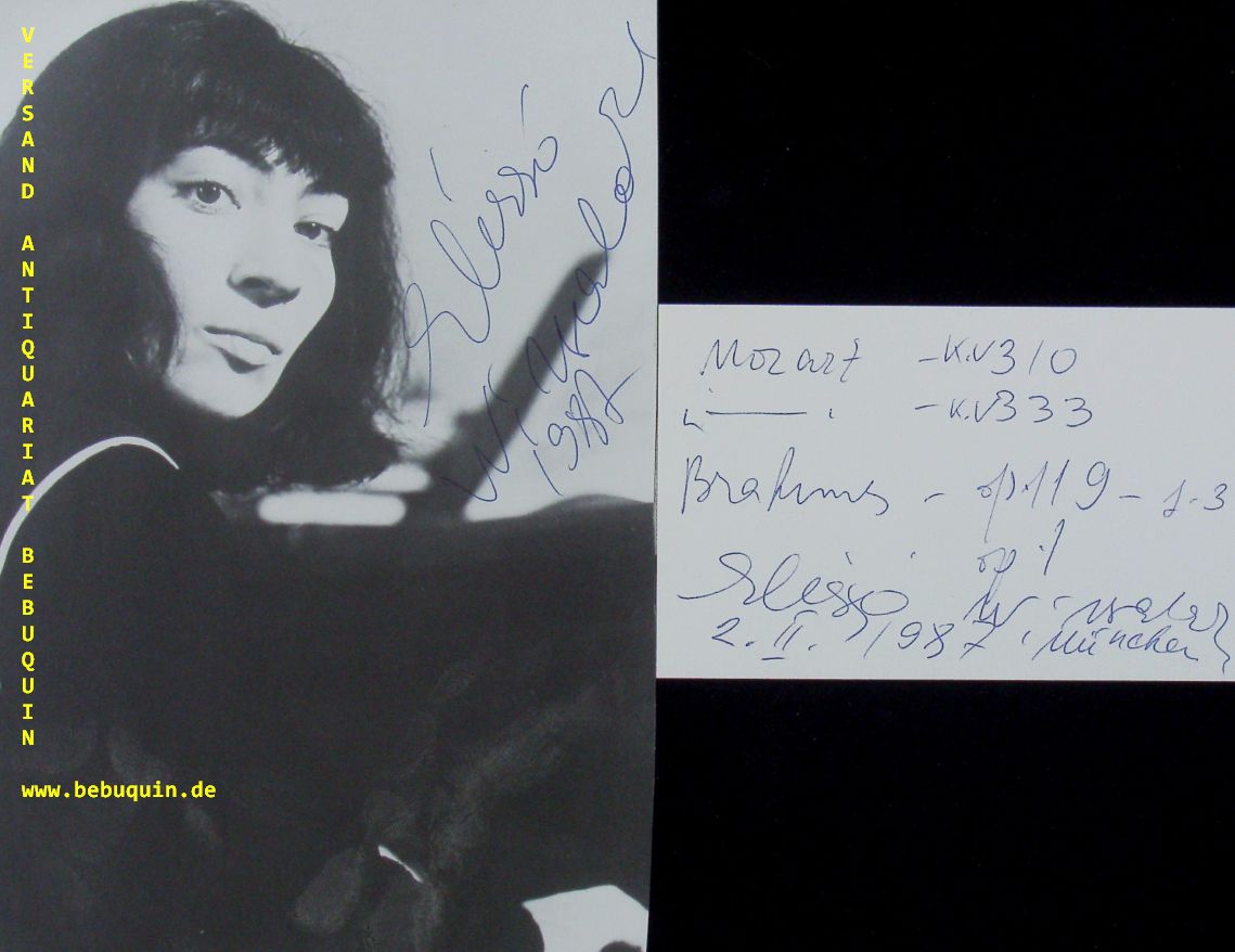 WIRSALADZE, Elisso (Pianistin): eigenhändig signierte und datierte Portraitseite + eigenhändig signierte und datierte Autogrammkarte. München (Philharmonie), 2.2.1987. 21 x 14 + 8 x 12,5 cm. 2 Bl. sehr selten. Elisso Konstantines asuli Wirsaladse (* 14. September 1942 in Tiflis, Georgien) ist eine georgische Pianistin. (Wikipedia)