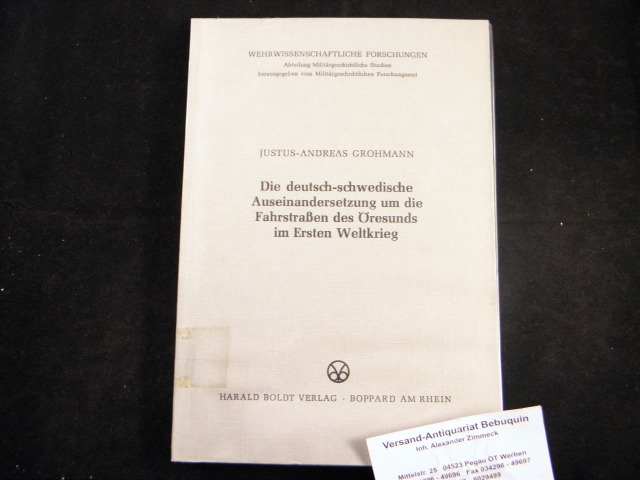 1. WELTKRIEG.– GROHMANN, Justus-Andreas: Die deutsch-schwedische Auseinandersetzung um die Fahrstrassen des Öresunds im Ersten Weltkrieg. Boppard (Boldt), 1974. Gr. 8°. 273 S. mit 1 Faltkarte. fol. OKart. Ordnungsgemäß aus Bundeswehrbeständen ausgesondertes Bibliotheksexemplar (Rückenschild, Stempel). = Wehrwissenschaftliche Forschungen, Bd. 19. EA.