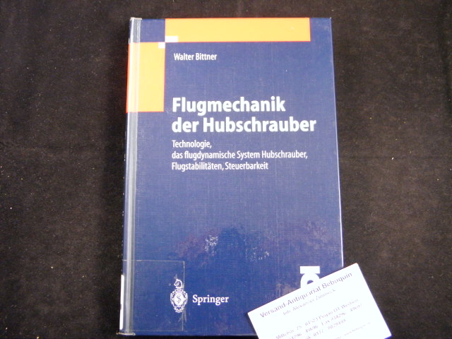LUFTFAHRT.– BITTNER, W.: Flugmechanik der Hubschrauber. Technologie, das flugdynamische System Hubschrauber, Flugstabilitäten, Steuerbarkeit. Berlin (Springer), 2002. Gr. 8°. 235 S. mit zahlr. Abb. ill. OPb. Ordnungsgemäß aus Bundeswehrbeständen ausgesondertes Bibliotheksexemplar (Rückenschild, Stempel). EA.