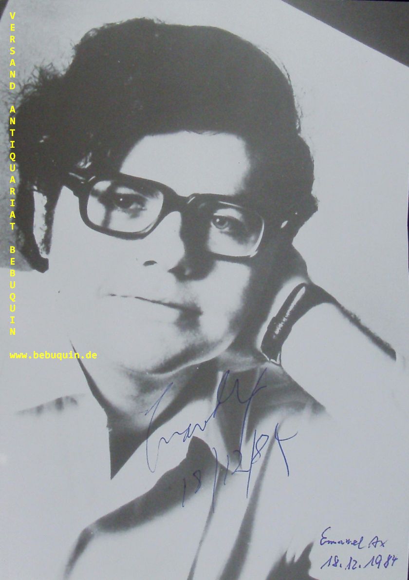 AX, Emanuel (Pianist): eigenhändig signierte und datierte Portraitseite. München (Philharmonie), 18.12.1984. 21 x 15 cm. 1 Bl. Emanuel Ax (* 8. Juni 1949 in Lemberg) ist ein US-amerikanischer Pianist polnisch-jüdischer Herkunft. Neben Klassik und Romantik widmet sich Ax Werken der Moderne, unter anderem von Arnold Schönberg, Paul Hindemith, Aaron Copland, Hans Werner Henze und John Adams. (Wikipedia)