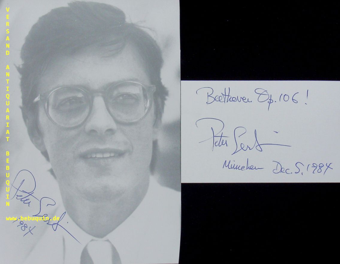 SERKIN, Peter (Pianist): eigenhändig signierte und datierte Portraitseiten + eigenhändig signierte und datierte Autogrammkarte. München, 5.12.1984. 21 x 13,5 cm. 2 Blatt. Peter Adolf Serkin (* 24. Juli 1947 in Manhattan, New York City, New York; † 1. Februar 2020 in Red Hook, New York) war ein US-amerikanischer Pianist europäischer Abstammung. Er war der Sohn des Pianisten Rudolf Serkin und Enkel des Violinisten Adolf Busch. (Wikipedia)