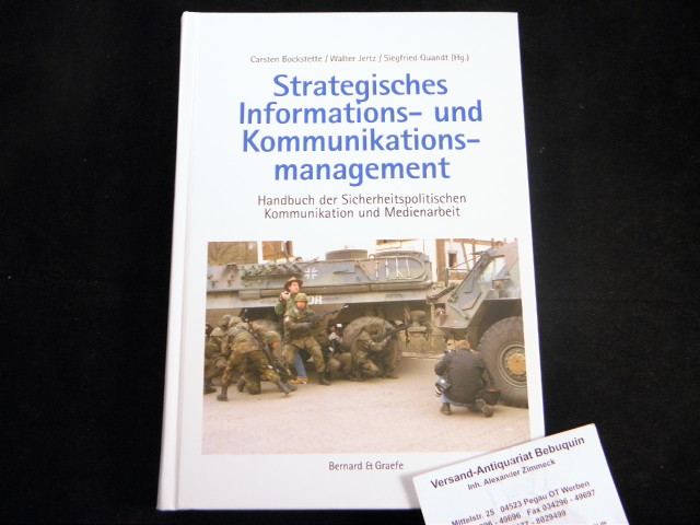 BOCKSTETTE / JERTZ / QUANDT: (Hrsg.) Strategisches Informations- und Kommunuikationsmanagement. Handbuch der Sicherheitspolitischen Kommunikation und Medienarbeit. Bonn (Bernard & Graefe), 2006. Gr. 8°. 310 S. mit Abb. ill. OPb. neuwertig. EA.
