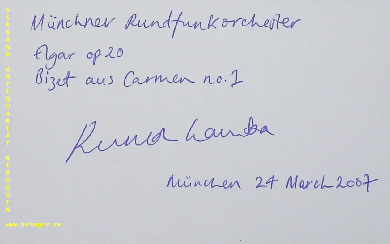 GAMBA, Rumon (Dirigent): eigenhändig signierte und datierte Autogrammkarten. München, 24.3.2007. 8 x 12,5 cm. 2 Karteikarten. Rumon Gamba (* 24. November 1972) ist ein britischer Dirigent. Einen internationalen Namen hat er sich vor allem mit seinen Aufnahmen klassischer britischer Filmmusik gemacht. (Wikipedia)