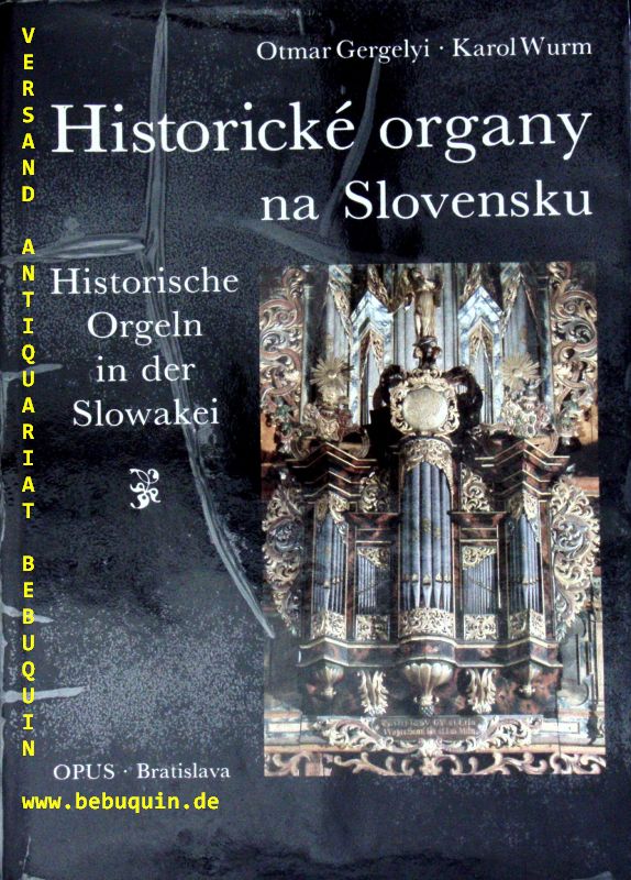 GERGELYI, Otmar + WURM, Karol: Historické organy na Slovensku. = Historische Orgeln in der Slowakei. Bratislava (OPUS), 1982. 4°. 350 (10) S. mit zahlr. meist farb. Bildtafeln. OLn mit OUmschl. Umschlag mit leichten Verwerfungen. EA.