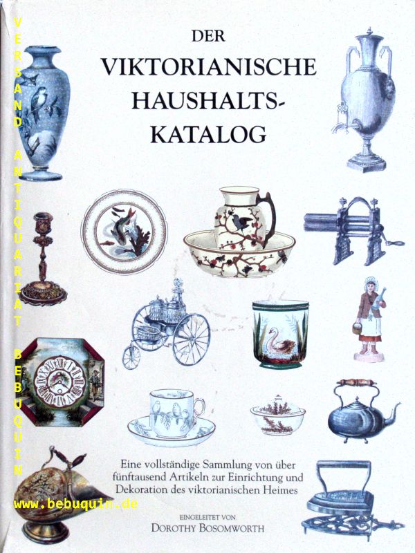 ANTIQUITÄTEN.– BOSOMWORTH, Dorothy: (Enl.) Der viktorianische Haushaltskatalog. Eine vollständige Sammlung von über fünftausend Artikeln zur Einrichtung und Dekoration des viktorianischen Heimes. Hildesheim (Olms), 1992. Gr. 4°. 328 S. mit zahlr. Abb. OPb mit OUmschl. gutes Ex. dt. EA.