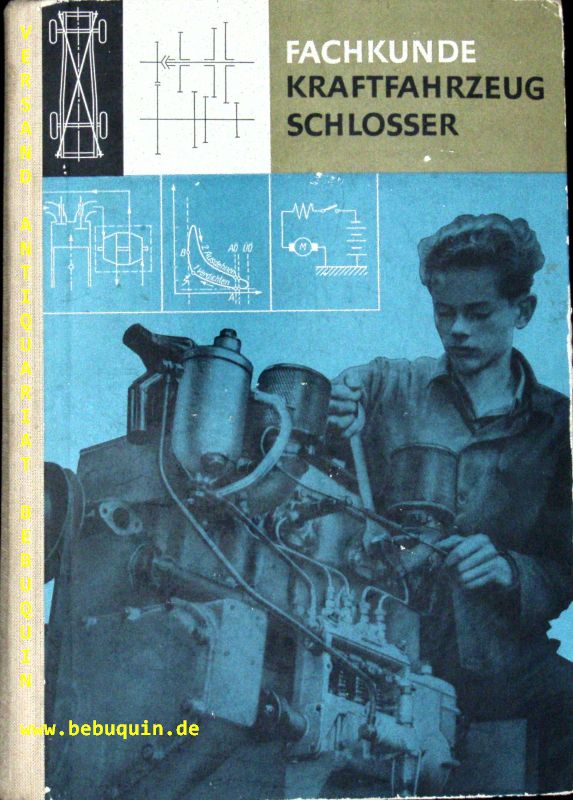 AUTO.– AUTORENKOLLEKTIV: Fachkunde Kraftfahrzeugschlosser. 3. verb. Aufl. Berlin (Technik), 1965. Gr. 8. 711 S. mit 784 Abb. ill. OHLn. Kanten etwas berieben, Rücken bestaubt, sonst gut. = Lehrbücher für die Berufsausbildung.