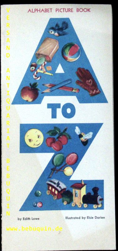 ABC-BÜCHER.– LOWE, Edith: Alphabet Picture Book. A to Z. o.O. (Lowe), 1966. 27 x 13 cm. 30 S. mit farb. Bildern von Elsie Darien. farb. ill. OKart. kaum gebräunt, Paginierung falsch. First Printing.