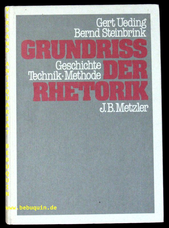 UEDING, Gert + STEINBRINK, Bernd: Grundriss der Rhetorik. Geschichte, Technik, Methode. 2. Aufl. Stuttgart (Metzler), 1986. Gr. 8°. XII, 372 S. OPb. NaV.
