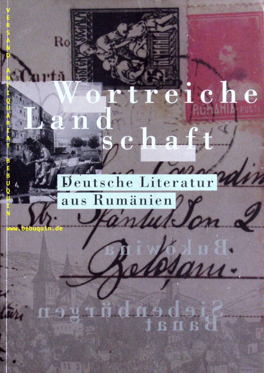 RUMÄNIEN.– FLORSTEDT, Renate: Wortreiche Landschaft. Deutsche Literatur aus Rumänien – Siebenbürgen, Banat, Bukowina. Ein Überblick vom 12. Jahrhundert bis zur Gegenwart ; Leipzig (Förderverein BlickPunktBuch), 1998. 4°. 231 S. mit zahlör. teils farb. Bildern farb. ill. OKart. wie neu. = Sonderheft Rumänien. EA.