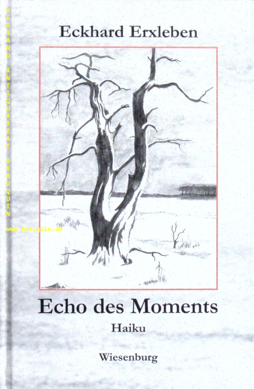 ERXLEBEN, Eckhard: Echo des Moments. Haiku, Senryû, Kurzgedichte. 1. Aufl. Schweinfurt (Wiesenburg), 2006. XII, 85 S. mit Bildtafeln. ill. OPb. wie neu. EA mit einer signierten und datierten eigenhändigen Verfasserwidmung auf Titelseite.