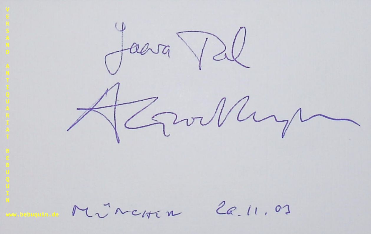 TAL, Yaara & GROETHUYSEN, Andreas (Klavierduo): eigenhändig von beiden signierte und datierte Autogrammkarte. München (Herkulessaal), 20.11.2003. 8 x 12,5 cm. Karteikarte. Als Duo Tal & Groethuysen gehören die israelische Pianistin Yaara Tal (* 27. Februar 1955 in Kfar Saba) und der deutsche Pianist Andreas Groethuysen (* 2. September 1956 in München) international zu den bekanntesten Klavierduos der Gegenwart. (Wikipedia)