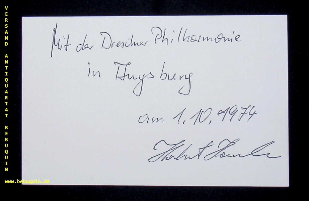 HAENCHEN, Hartmut (Dirigent): eigenhändig signierte und datierte Autogrammkarte. München (Herkulessaal), 1.10.1974. 8 x 12,5 cm. Karteikarte. Hartmut Haenchen (* 21. März 1943 in Dresden) ist ein deutscher Dirigent, der seit 2006 auch die niederländische Staatsbürgerschaft besitzt. (Wikipedia)