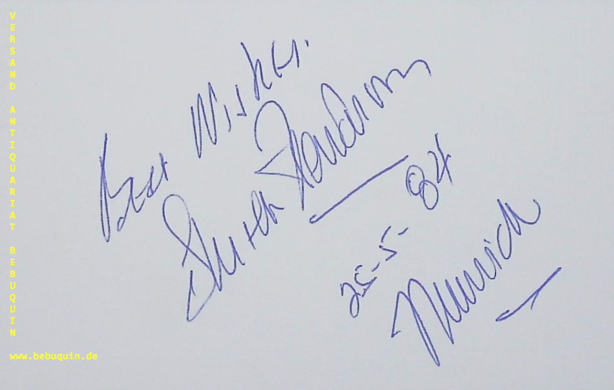 HENDERSON, Skitch (Dirigent): eigenhändig signierte und datierte Autogrammkarte: Best Wishes. München, 25.5.1984. 8 x 12,5 cm. Karteikarte. Skitch Henderson (* 27. Januar 1918 in Birmingham, England; † 1. November 2005 in New Milford, Connecticut; eigentlich Lyle Russell Cedric Henderson) war ein britisch-US-amerikanischer Pianist und Dirigent. (Wikipedia)