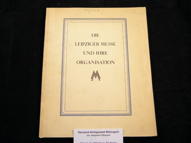 LEIPZIG.– DIE LEIPZIGER MESSE UND IHRE ORGANISATION.– Hrsg. vom Leipziger Messeamt. Leipzig, 1927. 4°. 86 S. ill. OKart. etwas gebräunt. seltene EA. Unser Preis: EUR 20,-- |