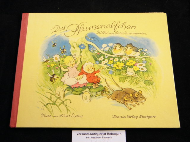 BAUMGARTEN.– SIXTUS, Albert: Das Blumenelfchen. Stuttgart (Titania), (1951). Quer 4°. 12 Bl. mit 12 farb. Bildtafeln von Fritz Baumgarten. farb. ill. OHLn. tadellos. EA. Blaume 219.