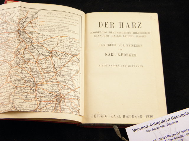 BAEDEKER.– DER HARZ.– Magdeburg, Braunschweig, Hildesheim, Hannover, Halle, Leipzig, Kassel. Leipzig (Baedeker), 1920. X, 154, 26 S. mit 23 Karten und 20 Plänen sowie dem Werbeanhang. OHLn. NaV. BK D 231a.