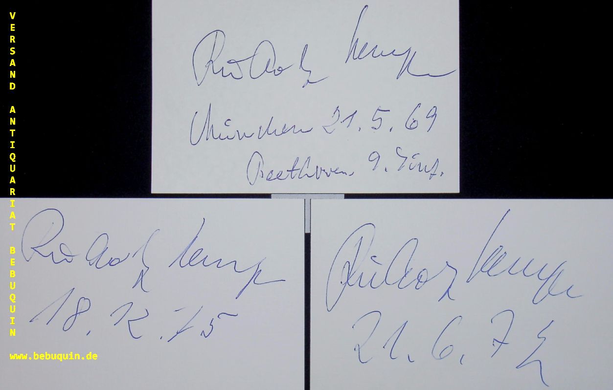 KEMPE, Rudolf (Dirigent): 3 eigenhändig signierte und datierte Autogrammkarten. Augsburg, 1969 – 1975. 8 x 12,5 cm. 3 Karteikarten. Rudolf Kempe (* 14. Juni 1910 in Dresden; † 12. Mai 1976 in Zürich) war ein deutscher Dirigent. (Wikipedia)