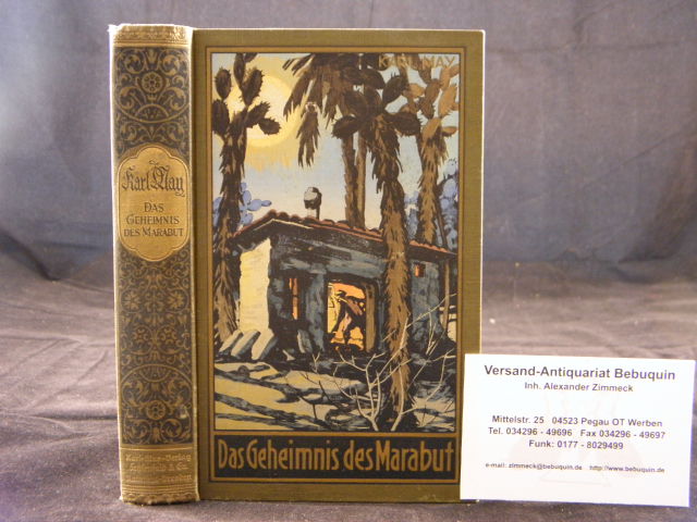 MAY, Karl: Das Geheimnis des Marabut. Hrsg. von E.A. Schmid und Franz Kandolf.. Radebeul (Karl May), 1930. 444 (3) S. farb. ill. OLn. (94b) mit leuchtendem Rückengold, feines Ex. = Gesammelte Werke, Bd. 57. EA. Hermesmeier / Schmatz GW 57.1.