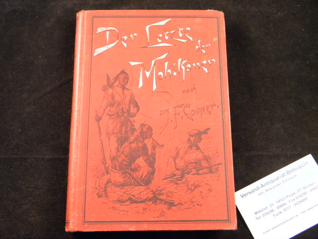 COOPER, James Fenimore: Der Letzte der Mohikaner. Bearb. von Friedrich Meister. Leipzig (Abel & Müller), (1896). 136 S., 4 Bl. mit 4 Buntbildern + 12 Textabb. von E. Klingebeil. farb. ill. OLn. 1. Aufl. dieser Ausgabe Weghaupt 592.