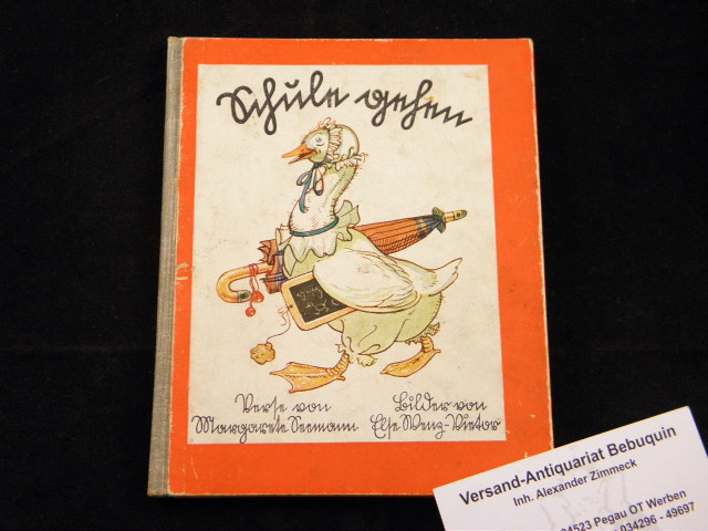WENZ-VIETOR.– SEEMANN, Margarete: Schule gehen. Nürnberg (Sebaldus), 1937. kl. 8°. 16 Bl. mit 16 farb. Bildtafeln und Textabb. von Else Wenz-Vietor. farb. ill. OHLn . keine fliegenden Vorsätze, vereinzelt braunfleckig. EA. Alfter 100.