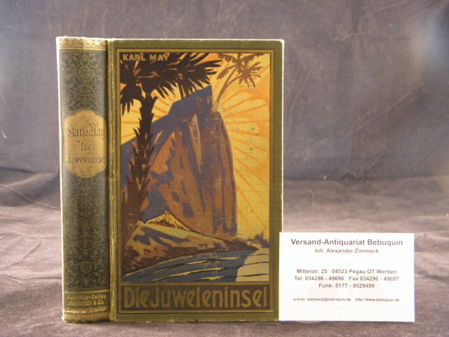 MAY, Karl: Die Juweleninsel. 1.– 20. Tsd. Radebeul (Karl May), 1926. 532 S. farb. ill. OLn. Einband leicht berieben, vorderes Gelenk gelockert, mit glänzendem Rückengold. = Gesammelte Werke, Bd. 46. EA. Hermesmeier /Schmatz GW 46.1.