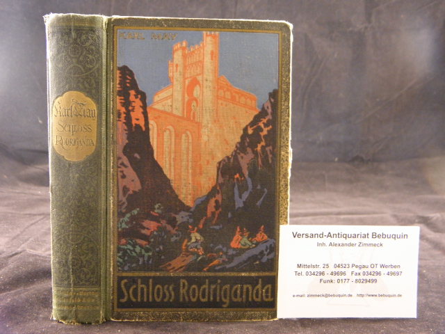 MAY, Karl: Schloß Rodriganda. 1.– 25. Tsd. Hrsg. von E.A. Schmid und Franz Kandolf. Radebeul (Karl May), (1924/25). 540 (3) S. mit 1 Titelbild. farb. ill. OHLn. Rückdeckel berieben, etwas schief gelesen, Einband leicht geblichen. = Gesammelte Werke, Bd. 51.