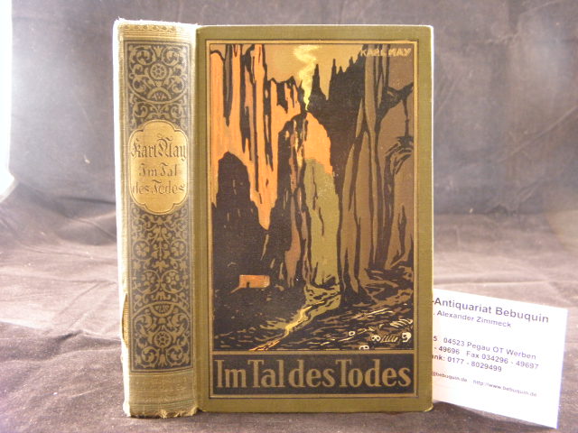 MAY, Karl: Im Tal des Todes. Roman. 1.– 20. Tsd. Radebeul (Karl May), 1934. 475 (3) S. farb. ill. OLn. Rücken ca 3 cm angeplatzt, sonst gutes Ex. = Gesammelte Werke, Bd. 62. Hermesmeier / Schmatz GW 62.1.