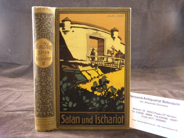 MAY, Karl: Satan und Ischariot. Reiseerzählung. II. Band. 92.– 102. Tsd. Radebeul (Karl May), (1933). 452 (1) S. farb. ill. OLn. Schnitt leicht angeschmutzt, gering berieben, strahlendes Rückengold, gutes Ex. = Gesammelte Werke, Bd. 21.