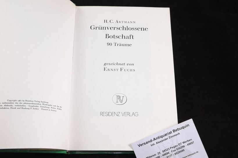 ARTMANN, H.C.: Grünverschlossene Botschaft. 90 Träume. Salzburg (Residenz), 1967. 58 Bl. gezeichnet von Ernst Fuchs. ill. OLn . EA WG² 18.