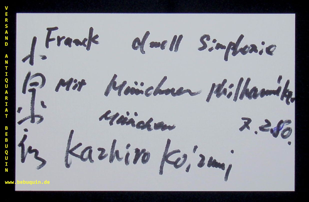 KOIZUMI, Kazuhiro (Dirigent): eigenhändig signierte und datierte Autogrammkarte. München (Herkulessaal), 7.2.1980. 8 x 12,5 cm. Karteikarte. Kazuhiro Koizumi (* 16. Oktober 1949 in Tokio) ist ein japanischer Dirigent. (Wikipedia).