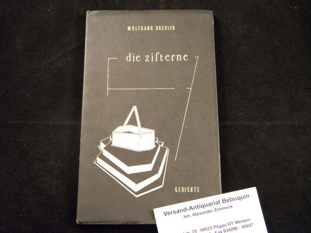 BÄCHLER, Wolfgang: Die Zisterne. Gedichte. Esslingen (Bechtle), 1950. 77 (3) S. O.Engl.Br. gutes Ex. EA des Erstlingswerks. WG nennt irrig „Der nächtliche Gast“ als Erstlingswerk, der jedoch erst 1952 erschien.