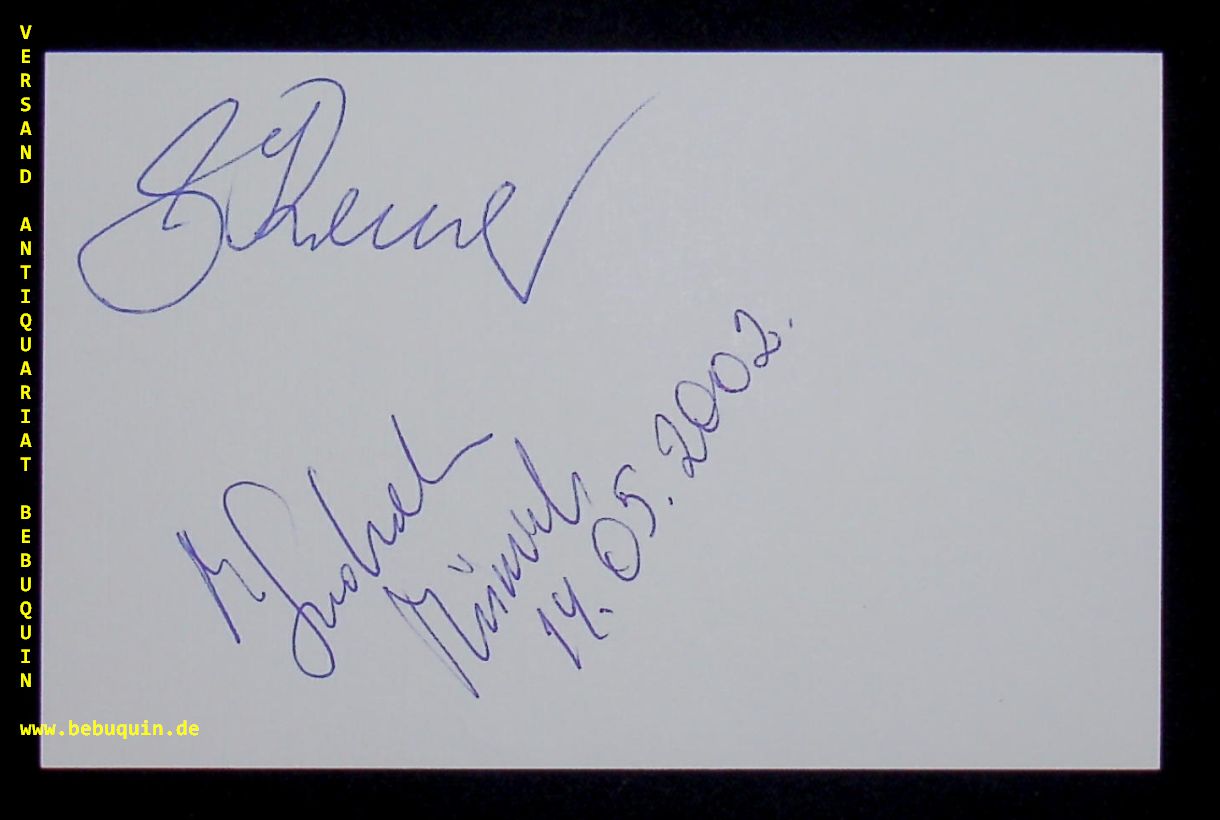 SUDRABA, Marta (Cellistin) + KREMER, Gidon (Violinist): eigenhändig von beiden signierte und datierte Autogrammkarte. München, 14.5.2002. 8 x 12,5 cm. Karteikarte. Gidon Kremer (* 27. Februar 1947 in Riga, Lettische SSR, UdSSR) ist ein ehemals sowjetischer, heute lettisch-deutscher Violinist. Marta Sudraba wurde 1975 in Tukums/Lettland geboren und erhielt ihren ersten Cellounterricht in ihrer Heimatstadt Riga (Konzertdiplom 1997). Weitere Studien führten sie zu Thomas Demenga und Walter Levin nach Basel (Konzertdiplom 1999) und Heinrich Schiff in Wien.(Wikipedia)