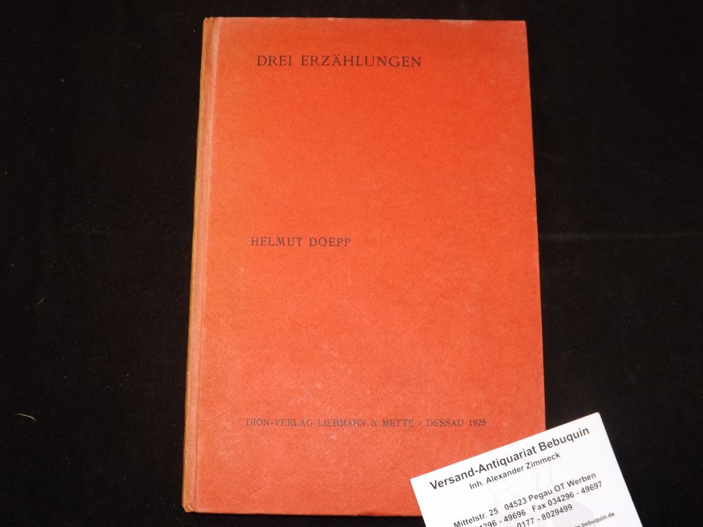 DOEPP, Helmut: Drei Erzählungen. Dessau (Dion), 1925. Gr. 8°. 77 (3) S. OPb. Vorsatz gebräunt. EA des Erstlingswerks.