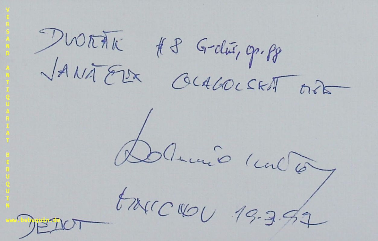 KULINSKY, Bohumil (Dirigent): eigenhändig signierte und datierte Autogrammkarte: Debut. München, 19.3.1997. 8 x 12,5 cm. Karteikarte. Bohumil Kulínský mladší (5. kvetna 1959 Praha – 15. zárí 2018 Praha ) byl ceský dirigent a sbormistr, známý predevším vedením detského peveckého sboru Bambini di Praga od roku 1977 do svého zatcení v listopadu 2004. (Wikipedia)