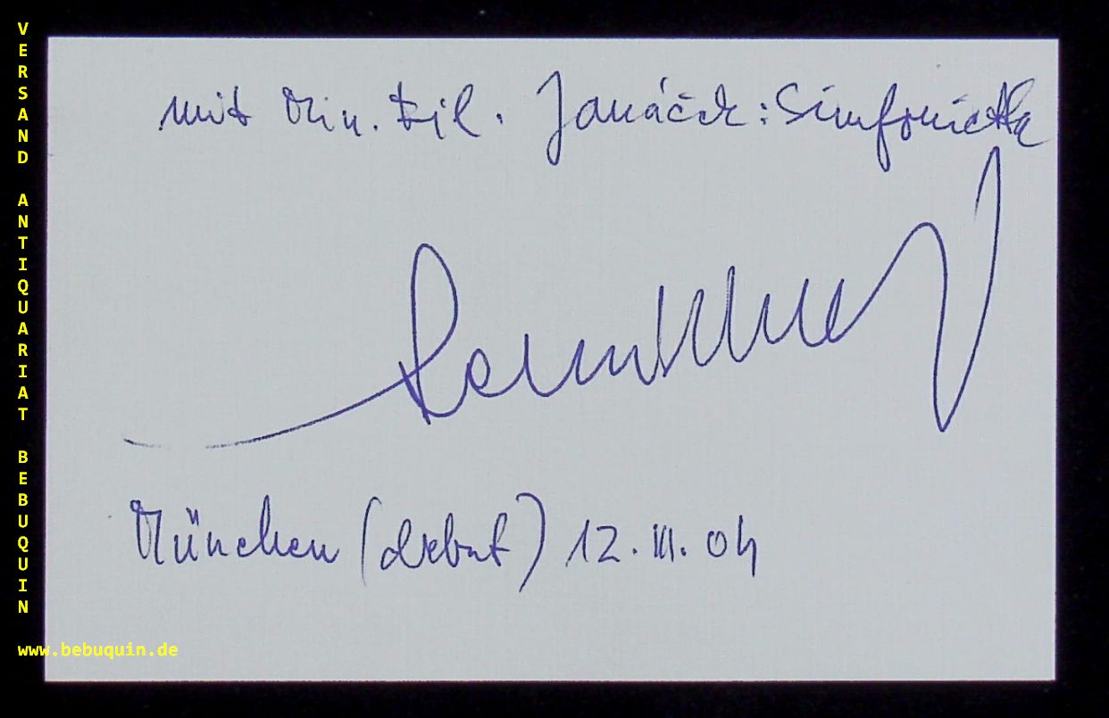 LENARD, Ondrej (Dirigent): eigenhändig signierte und datierte Autogrammkarte. München Debut. München (Philharmonie), 12.3.2004. 8 x 12,5 cm. Karteikarten. Ondrej Lenárd (* 9. September 1942 in Krompachy) ist ein slowakischer Dirigent. (Wikipedia)