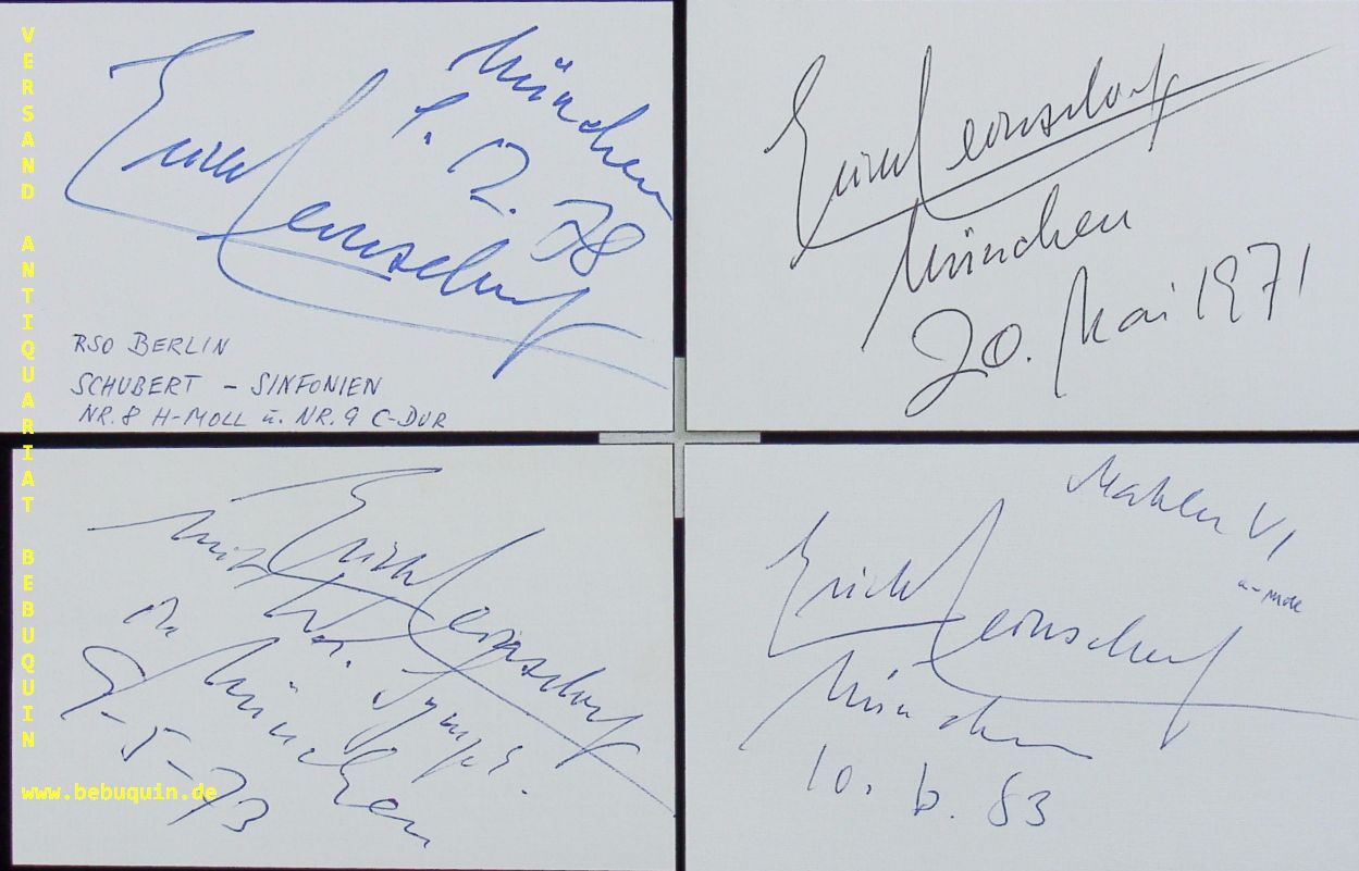 LEINSDORF, 4 eigenhändig signierte und datierte Autogrammkarten.