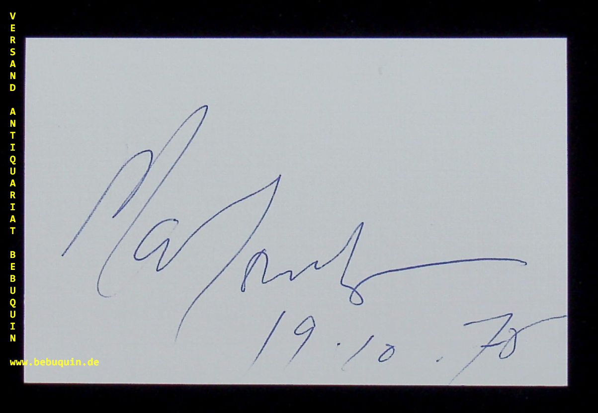 AMADEUS QUARTET.– LOVETT, Martin (Cellist): eigenhändig signierte und datierte Autogrammkarte. o.O. 19.10.1975. 8 x 12,5 cm. Karteikarte. Martin Lovett (3 March 1927 – 29 April 2020) was an English cellist, best known for his work for 40 years with the Amadeus Quartet, one of the leading string quartets at the time. (Wikipedia)
