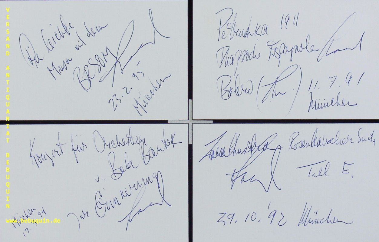 MAAZEL, Lorin (Dirigent): 28 eigenhändig signierte und datierte Autogrammkarten mit zahlreichen eigenhändigen Programmbeschreibungen. München (Philharmonie), 1975 – 1995. 8 x 12,5 cm. 28 Karteikarten. Lorin Varencove Maazel (* 6. März 1930 in Neuilly-sur-Seine, Frankreich; † 13. Juli 2014 in Castleton, Rappahannock County, Virginia) war ein US-amerikanischer Dirigent, Violinist und Komponist. (Wikipedia)