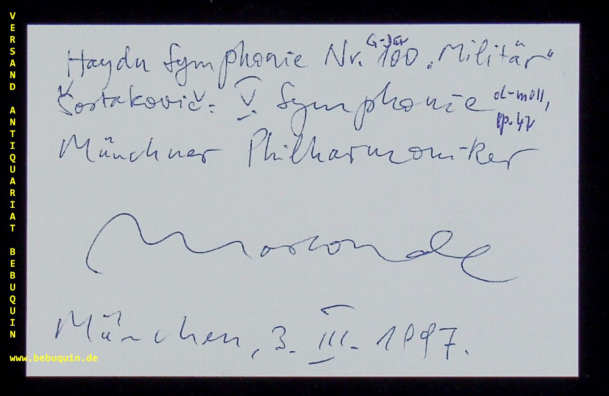 MAS CONDE, Salvador (Dirigent): eigenhändig signierte und datierte Autogrammkarte. München (Philharmonie), 3.3.1997. 8 x 12,5 cm. Karteikarte. Salvador Mas i Conde (* 27. Februar 1951 in Barcelona) ist ein katalanischer Dirigent. (Wikipedia)