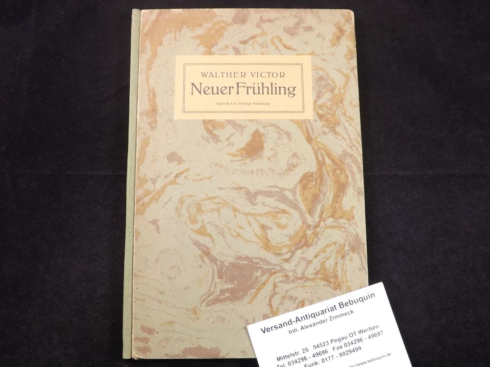 VICTOR, Walther: Neuer Frühling. Gedichte. Hamburg (Auer), 1921. 63 S. OPb. mit neuem Leinenrücken. vorderes Gelenk stabilisiert. EA des seltenen Erstlingswerks.