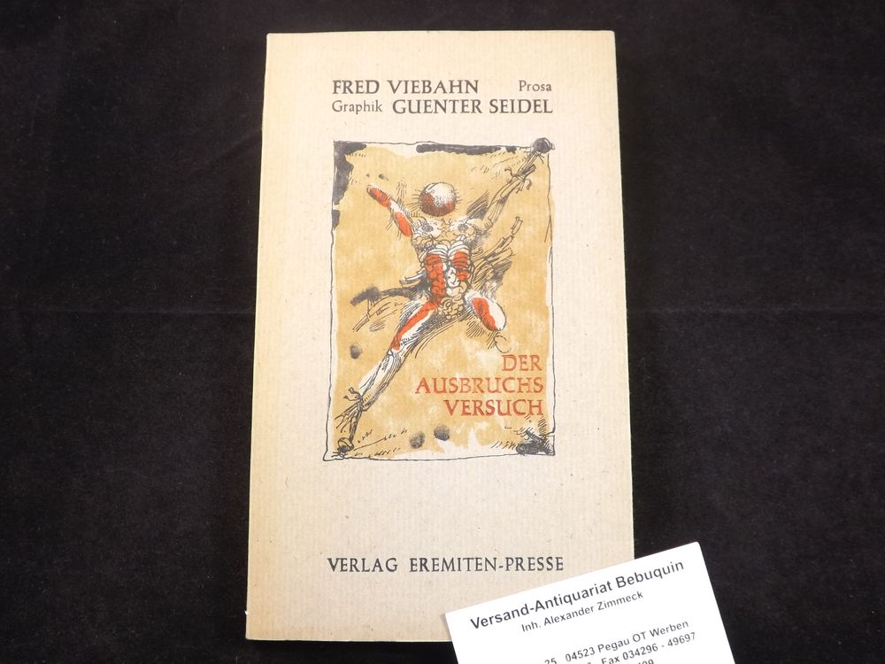VIEBAHN, Fred: Der Ausbruchsversuch. Stierstadt (Eremiten Presse), 1967. 44 S. mit 7 OGraphiken von Günter Seidel. farb. ill. OKart. feines Ex. Nr. 1 von 170 nummerieren und vom Verfasser signierten Ex. der EA des Erstlings.